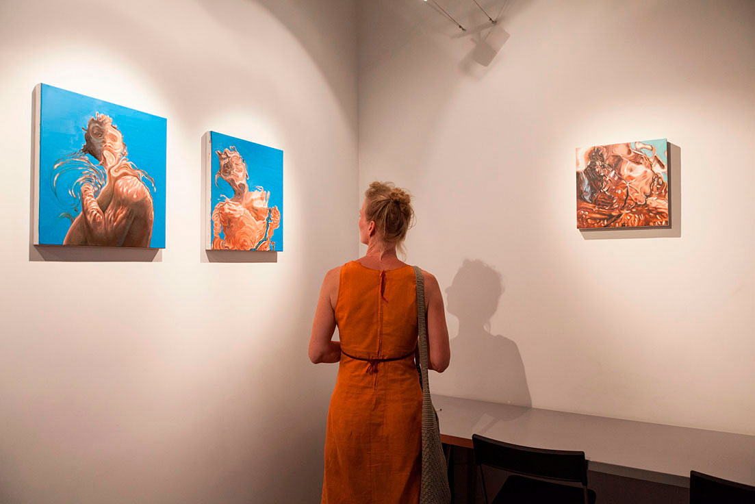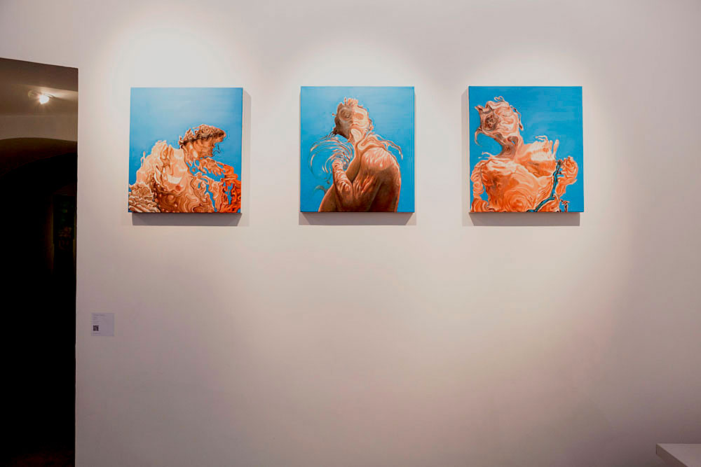 But returning to another image of Romanticism, I remember the "shipwreck" which is "sweet" in Leopardi's words. In Nicola Rotiroti's works it is as if Ophelia too had become soluble, with a feeling of death that expands through the liquid and becomes cosmic. The gentle and dramatic deformation that takes place in these images becomes pure anguish, when she takes the effigy of the return to the amniotic. These works seem to be painted from the horizon below, as if everything below the navel of the world is taking on importance for the first time, and our vision is reversed. What lies beneath the surface of the water, this liquid negativity, here takes precedence over what lies above, and the world, according to a relativity that can only be anguished, turns upside down. This is also the movement of the psyche, in which an overturning is normally necessary for the removed to reach the consciousness. This work is essentially the painter's task, pursued by Rotiroti with a liquid allure that cannot but conquer us.