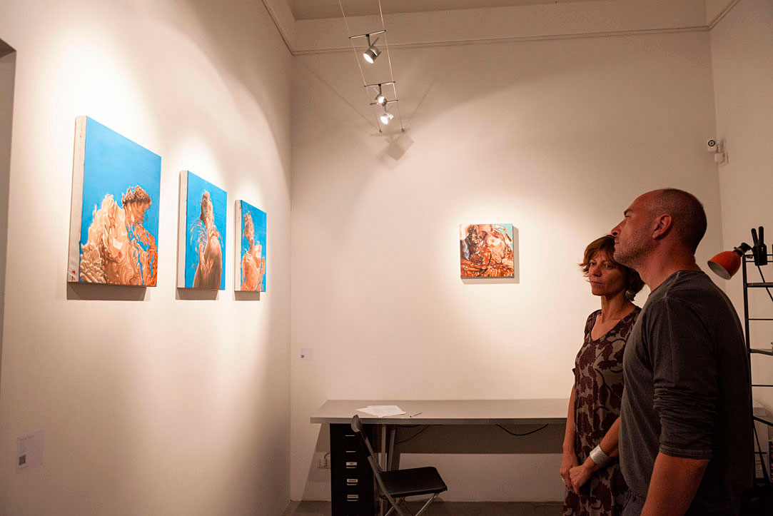 In one of the most famous images of Romanticism, the poet John Keats says that his name is written on water. The work of Nicola Rotiroti seems to be the nemesis of this concept, and to make the writing of the name imperishable, the initials with the flesh, more precisely with a mixture of flesh and image, a hybrid. In cultural dimensions different from ours, in the East, the mixed image/water/meat is much more popular. In that world there is no difference between reality and evanescence, because the time factor does not matter: whether reality is constituted in transient phenomena or in definitive facts has little difference for them. The sense of the dépense of time takes on a feeble dimension of happening, which is above all a balanced reception of the event, in view of a greater knowledge of the deeper laws. The water thickens and becomes flesh, or it rarefies and becomes image, simply. The West, on the contrary, had to wait for Impressionism to decree the importance of "surface" states of consciousness, independent from the will, and equal them to the apparently definitive ones. All this disposes us to a different knowledge of the pictorial happening in these works, where a liquid expressionism dictates new laws.