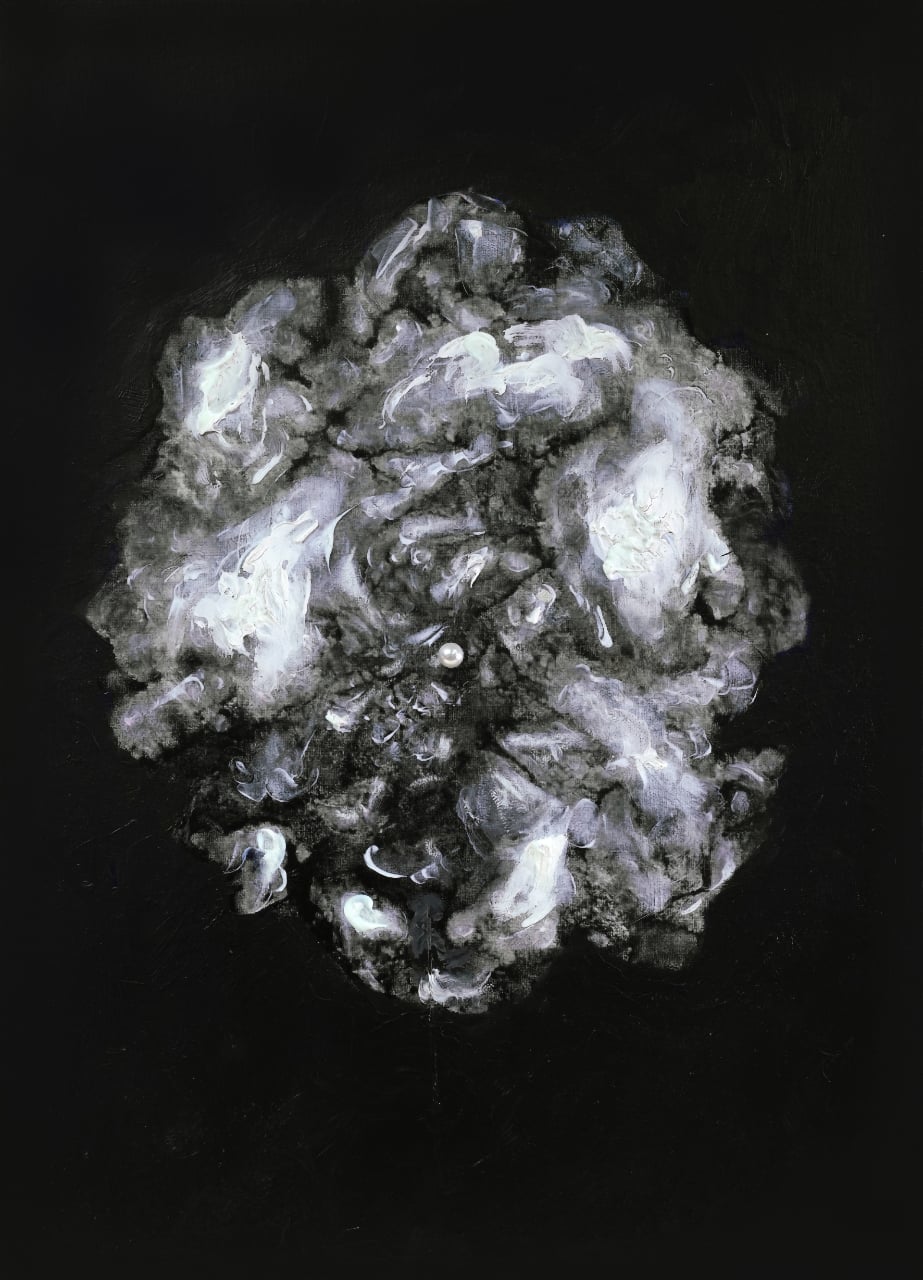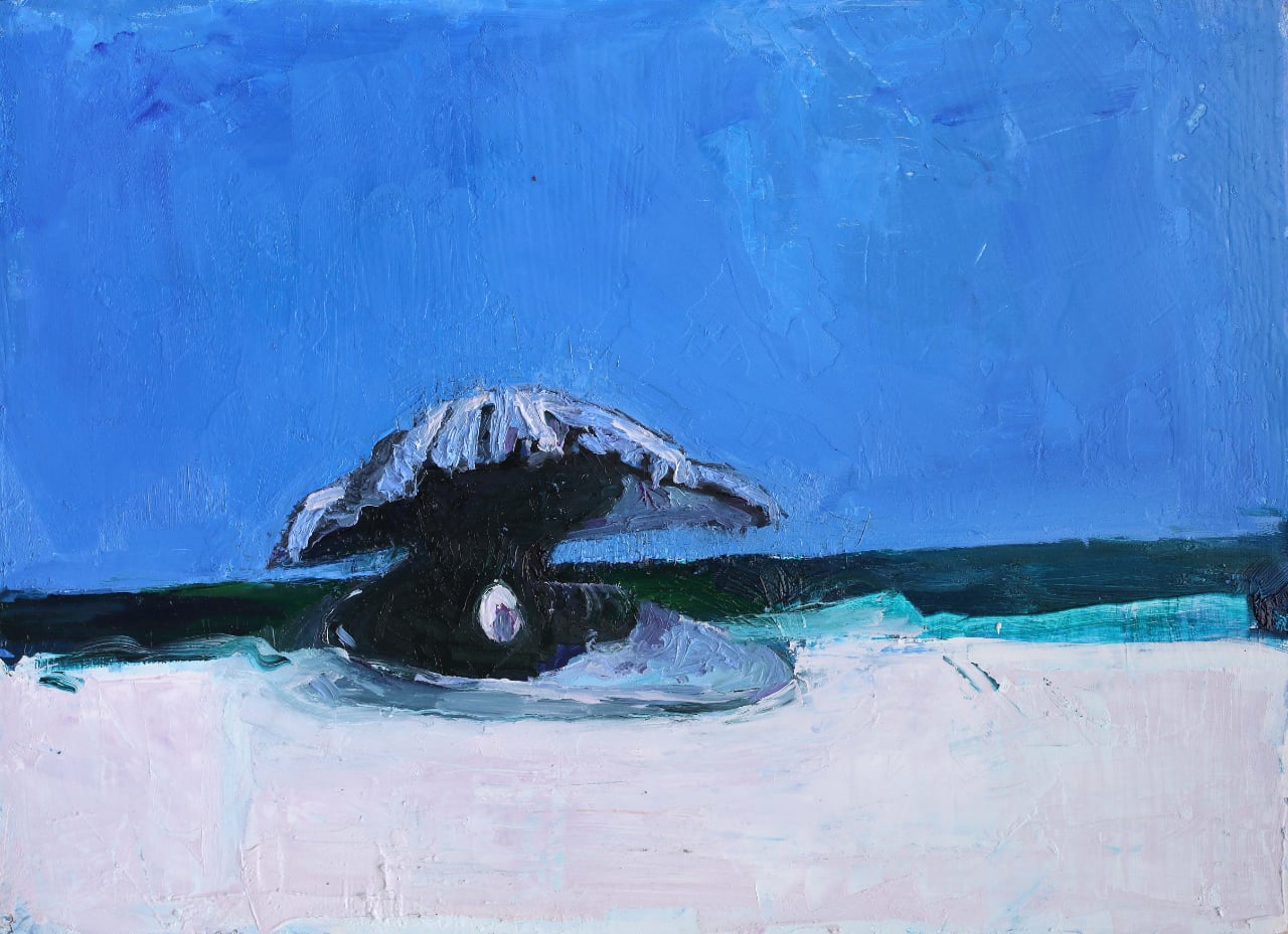 The original project for this exhibition did not intend to provide a figurative representation or “reproduce,” so to speak, the elements suggested by its title—though their charm is undeniable. The shell, the sea, the pearl, and the implicit references to feminine beauty framed by pearls form a neo-romantic repertoire with undeniable aesthetic and sentimental appeal. Yet, this is not what is meant to be emphasized. Rather, it is the will to continue investigating through painting what has so far been explored through reasoning—a painting that does not merely represent reality but penetrates and understands it from within, revealing its essence as great art does.