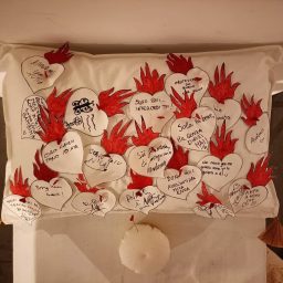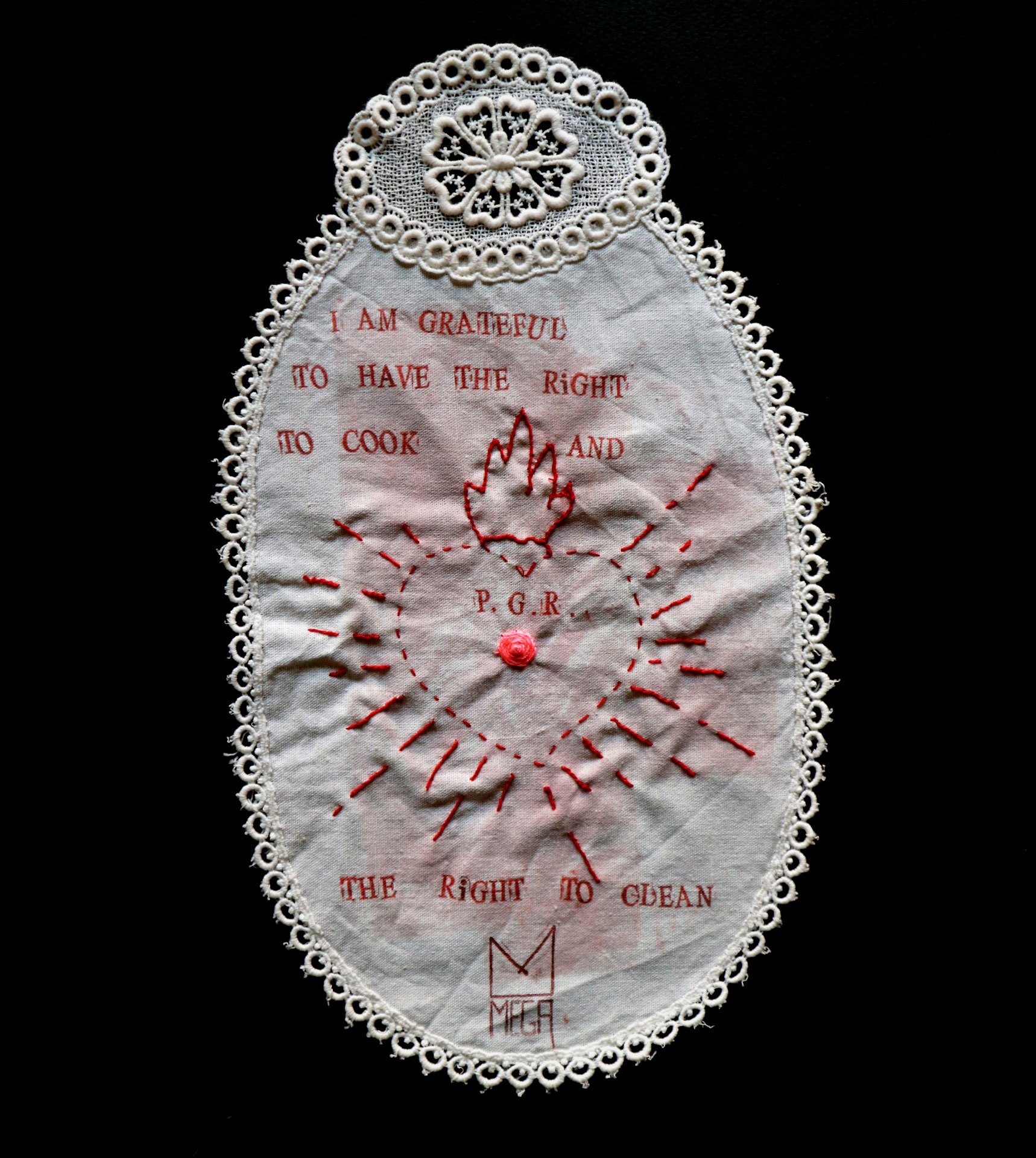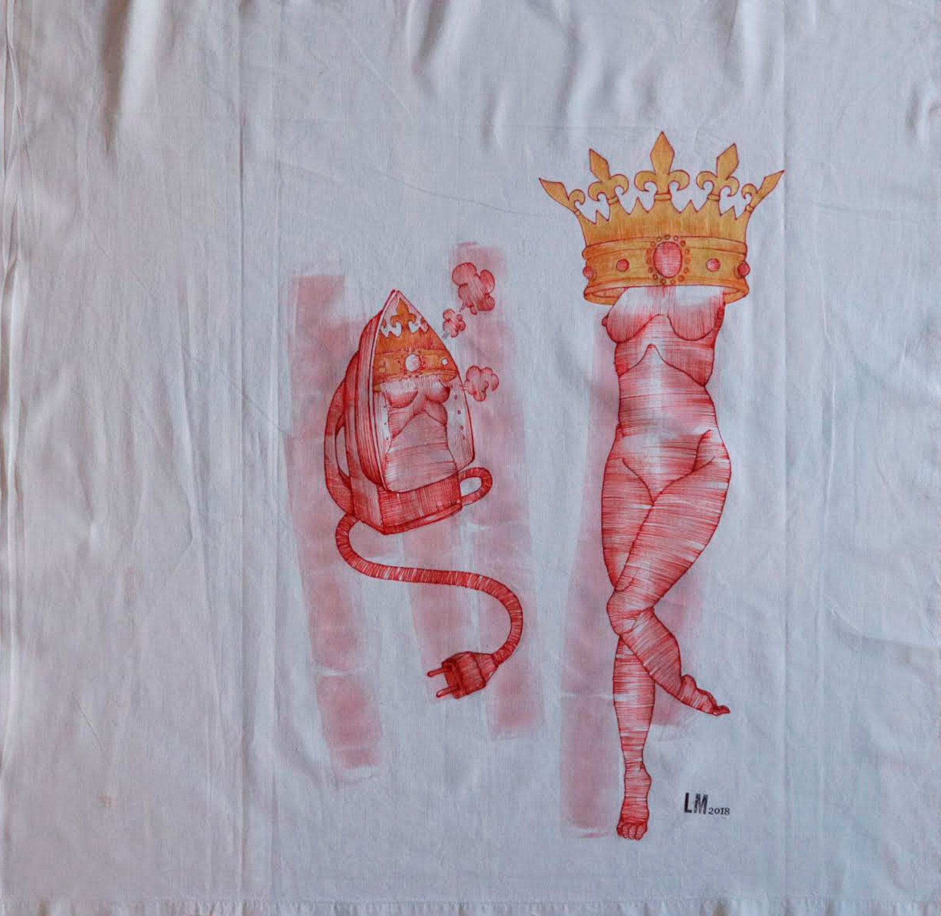The exhibition will feature works from her most recent production, alternating drawing, text, embroidery, printing, along with the use of unconventional techniques such as pink wax, with which she intervenes on textile materials mostly belonging to ancient trousseaux.