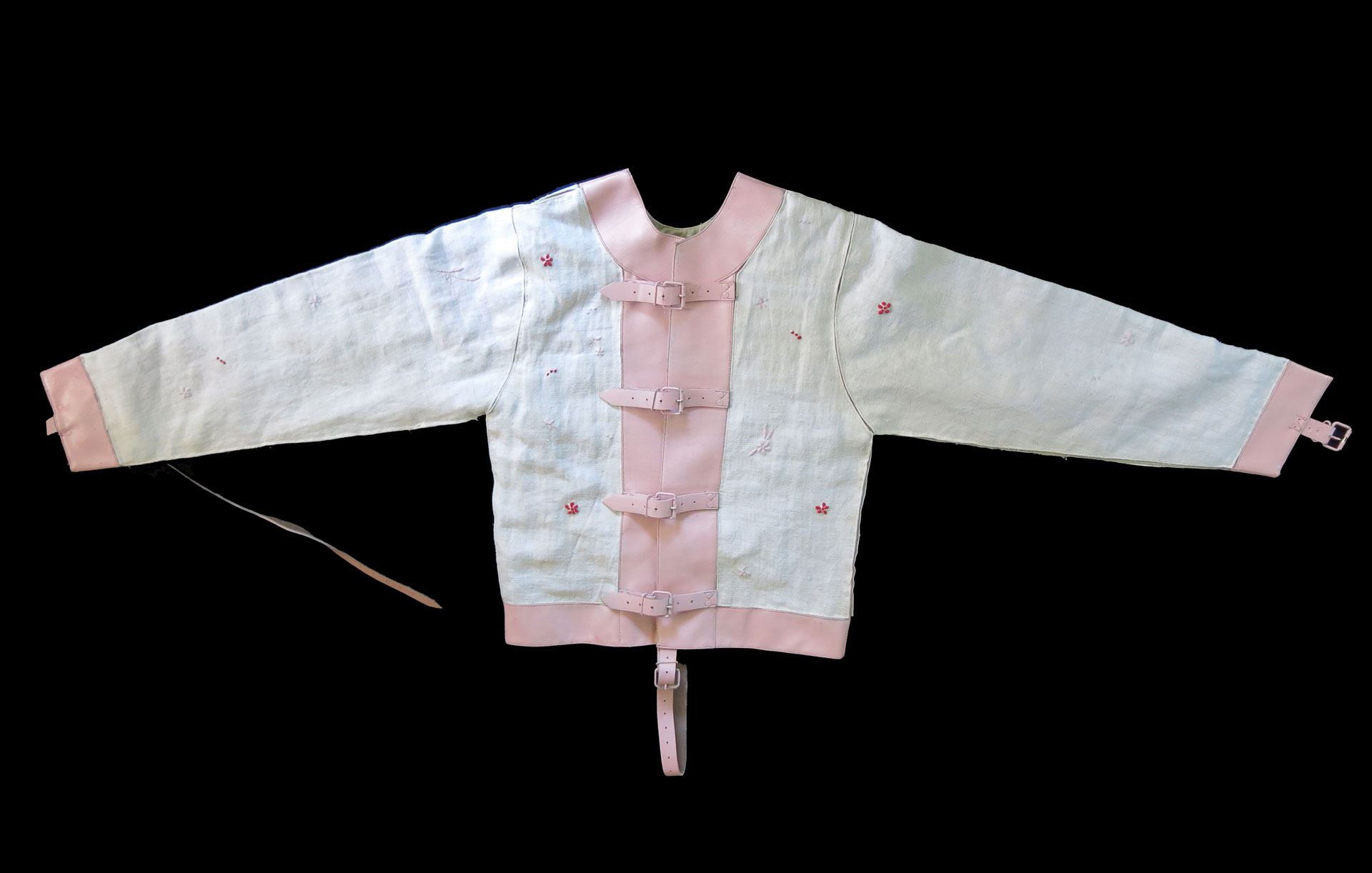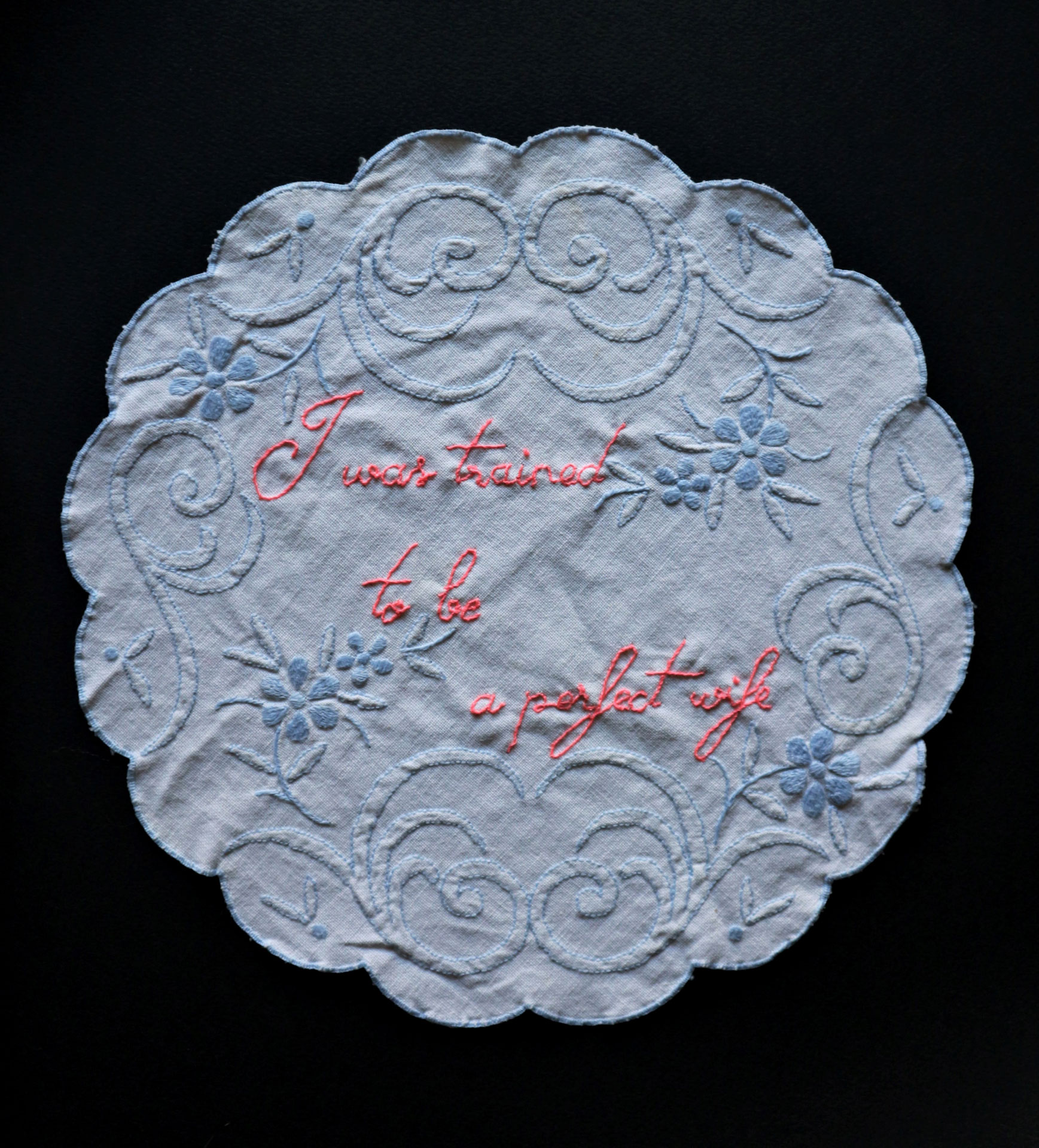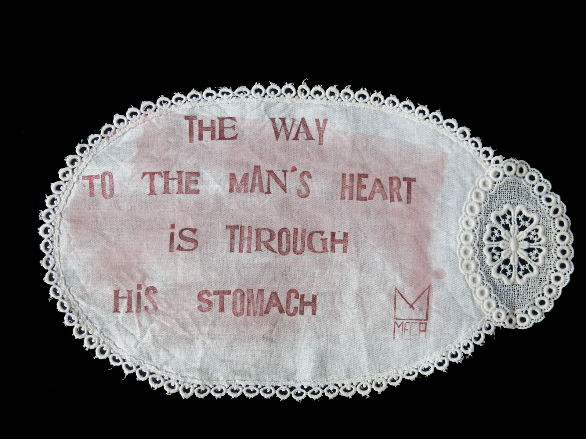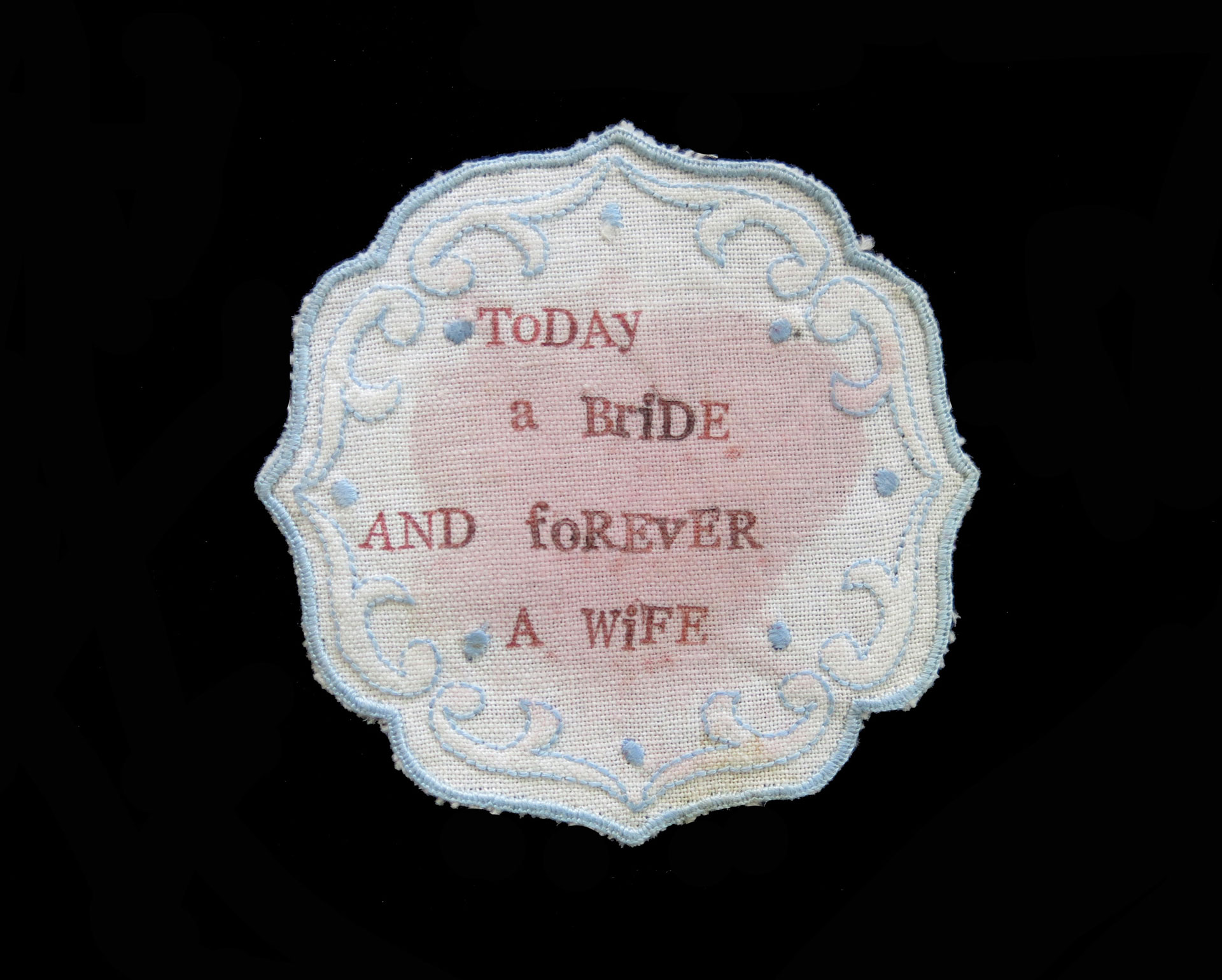 The trousseau—a set of clothes, linen, and other accessories a bride brings as a dowry into her new home—becomes the privileged support of her works and a starting point for investigating the condition of women and their roles as wives and mothers.