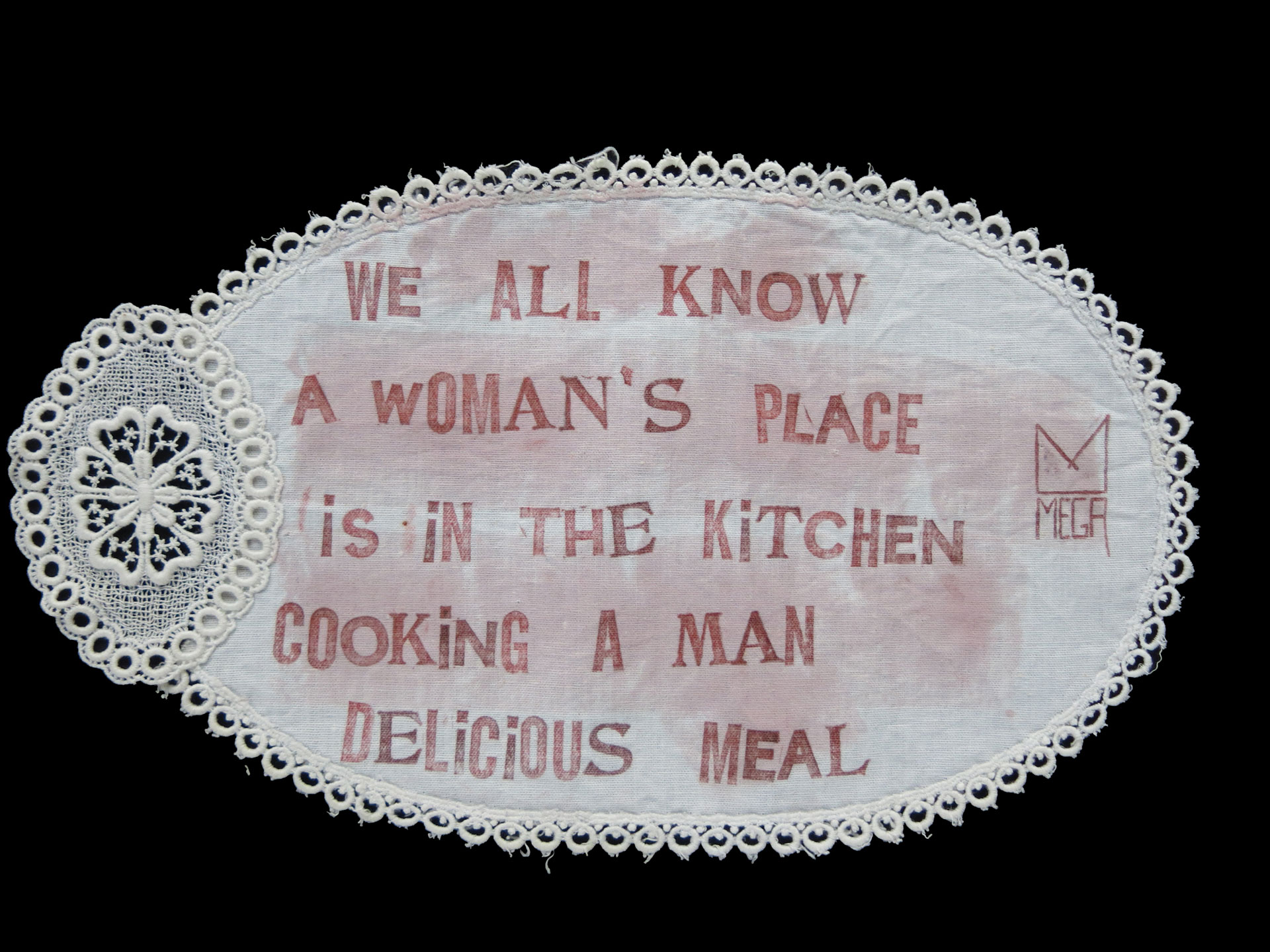 Through an eccentric and contemporary language, Mega transforms testimonies of constrained and predefined femininity into works capable of investigating and conveying poetic, social, and political issues, where the ironic touch leaves the observer responsible for the possible depth of interpretation.