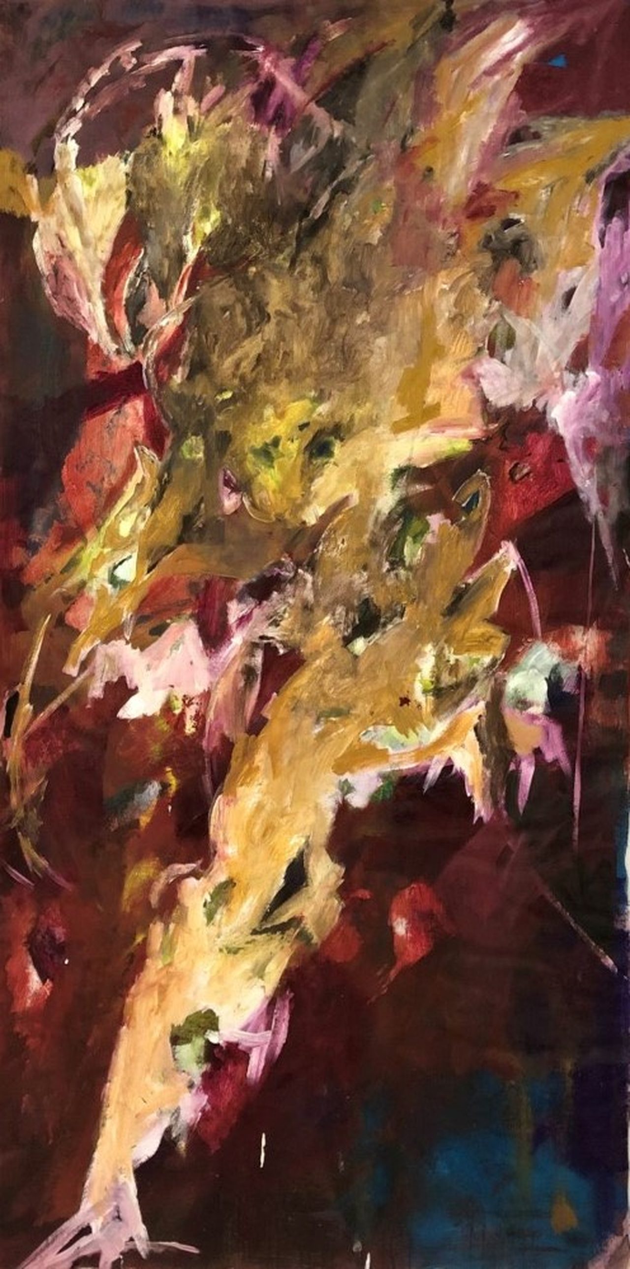 The works are true creatures—massive, imposing beings that come to life without prediction. Each creation unfolds impulsively and spontaneously, an immediate reaction reflected in their extraordinary dimensions. Free from constraint, these entities seem to move as autonomous presences that refuse categorization while expressing powerful interiority. Each canvas, though a physical container, is merely a support for an expression developing on its own course, as if each Giant possessed an intrinsic awareness of the irregular space needed to exist fully.