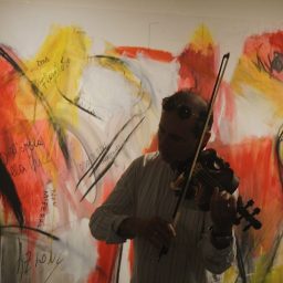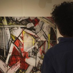An experience described as crossing a minefield, where he strives to “soften psychological discomfort with a tube of acrylic.”