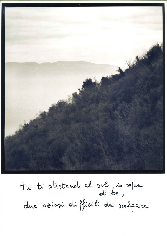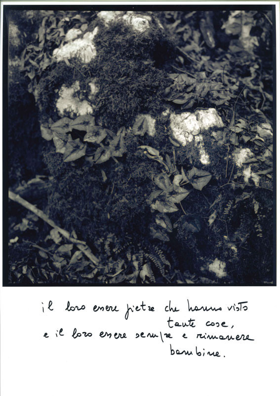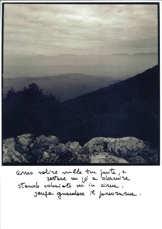 All photos are 29x29 cm printed on 30x40 cm paper; the poet Claudio Damiani handwrote verses on the remaining part of the rectangular sheet, so the complete artwork is considered 30x40 cm.