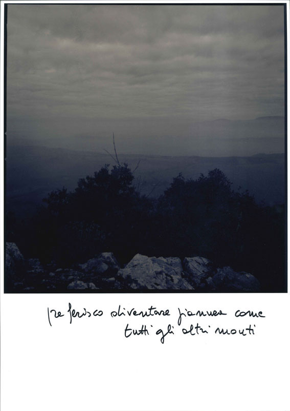 The images of Mount Soratte, captured in skillful black and white using the technique of expired film, inspired by Man Ray, were created to illustrate Claudio Damiani’s poetry book “Ode al Monte Soratte.” These are the trails the poet walks almost daily — his places of contemplation, the flora he knows in detail, and the panoramic views toward the Tiber and beyond, under a magnificent overcast sky that turned the landscape into an immense photographic studio.