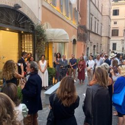 Leda Patasheva presents a series of works that describe the blossoming of encounters between human beings, religions, and different languages. Inspired by the long tradition of the Eternal City, the artist feels welcomed by Rome, which makes her feel at home, and she conveys this impression.