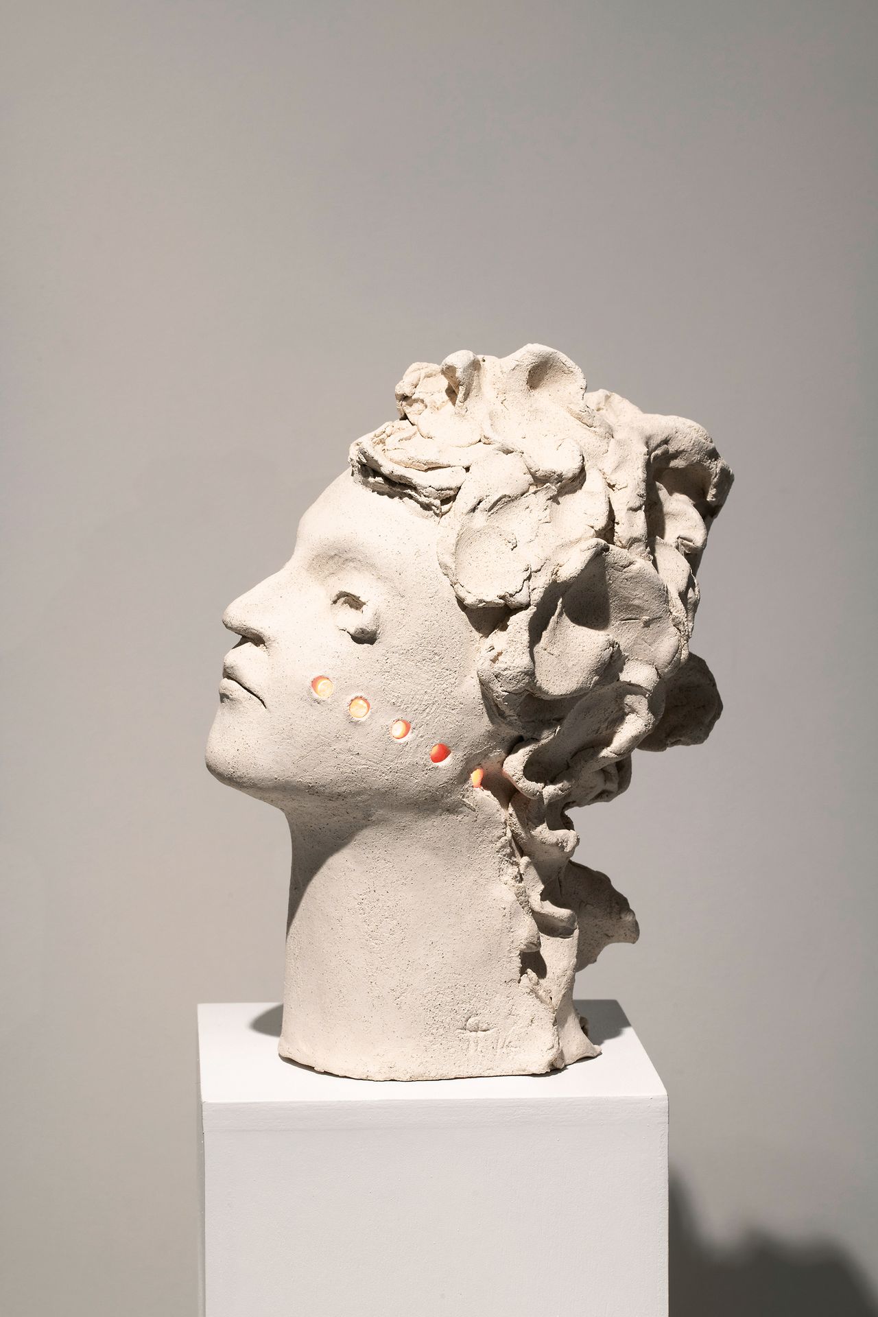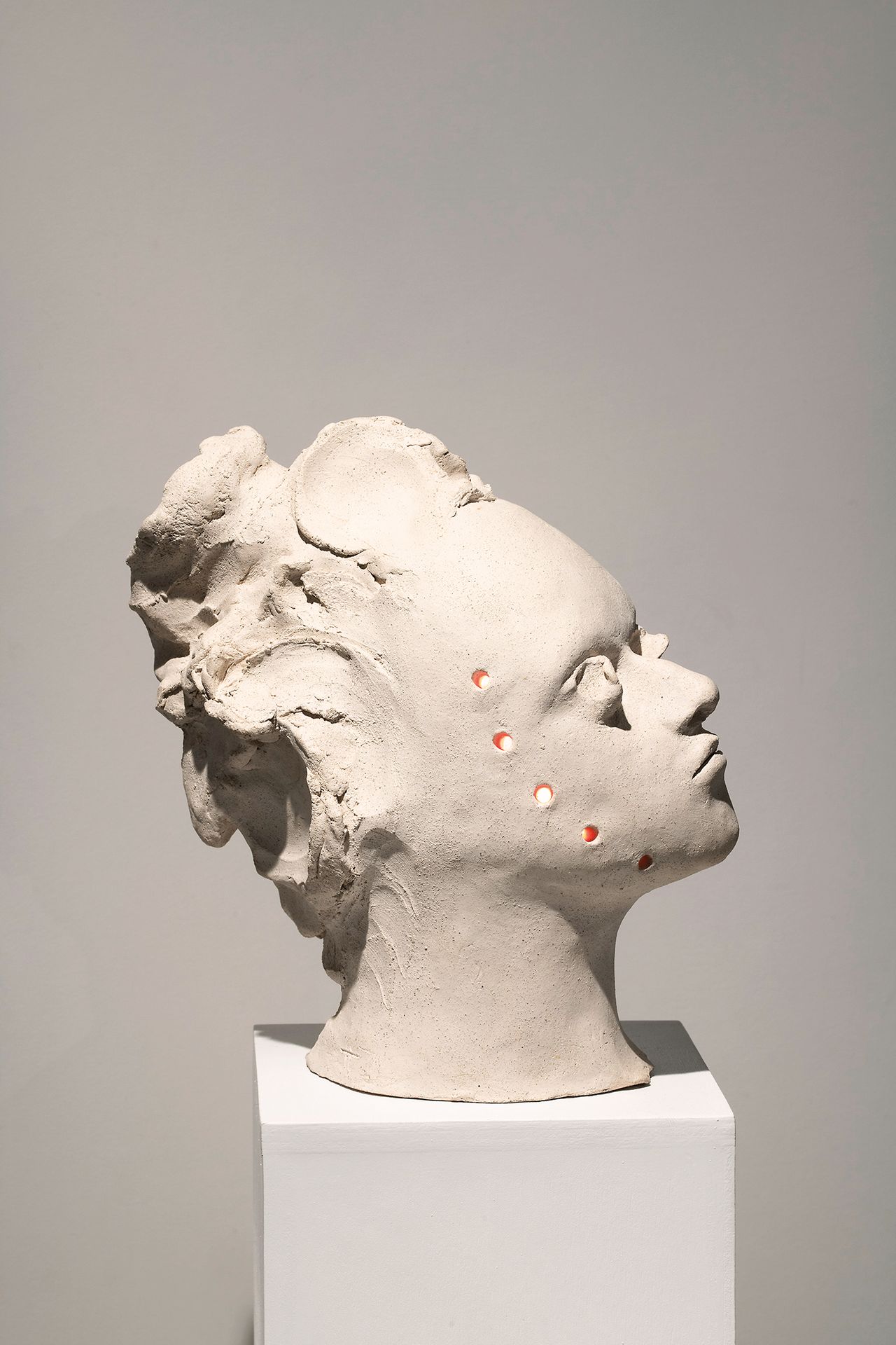 Francesca Tulli has always shaped her creative process by unsettling the viewer’s gaze, both in her paintings and in her sculptures, whether in ceramic or bronze. In this latest series of works presented in the exhibition titled “Mutants,” this disorientation becomes even more evident. The title refers to how the creator conceives the work — as something that goes beyond physical limits and expresses a possible, future evolution. The work does not stop at what is visible but alludes to something more. What can be seen actually reflects one idea among many possible ones. The tonal relationship between light and form, in both the bronzes and ceramics, generates a vibration or external movement, a “lucidity” that evokes a silent shifting of material elements. The LEDs within the “heads,” or rather “faces,” reveal that everything originates from within and structures itself outward. The result is essentially clear in its integrity and compositional balance. Uniqueness, a vital aspect of this work, is achieved through a composition in which the elements are wisely arranged in space, interacting in a constructive development of forms. These forms seem to exist only through the awareness of two qualities: purity and organization. At the same time, the work sometimes strives to extend beyond its limits, in the hope of becoming a new way of seeing things.