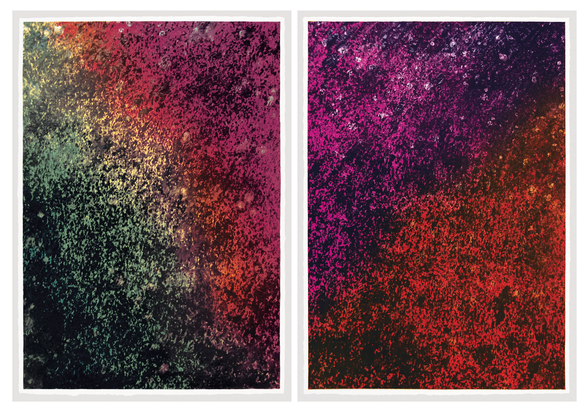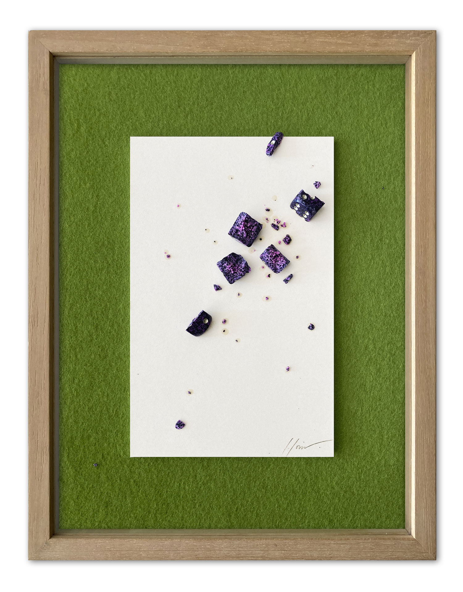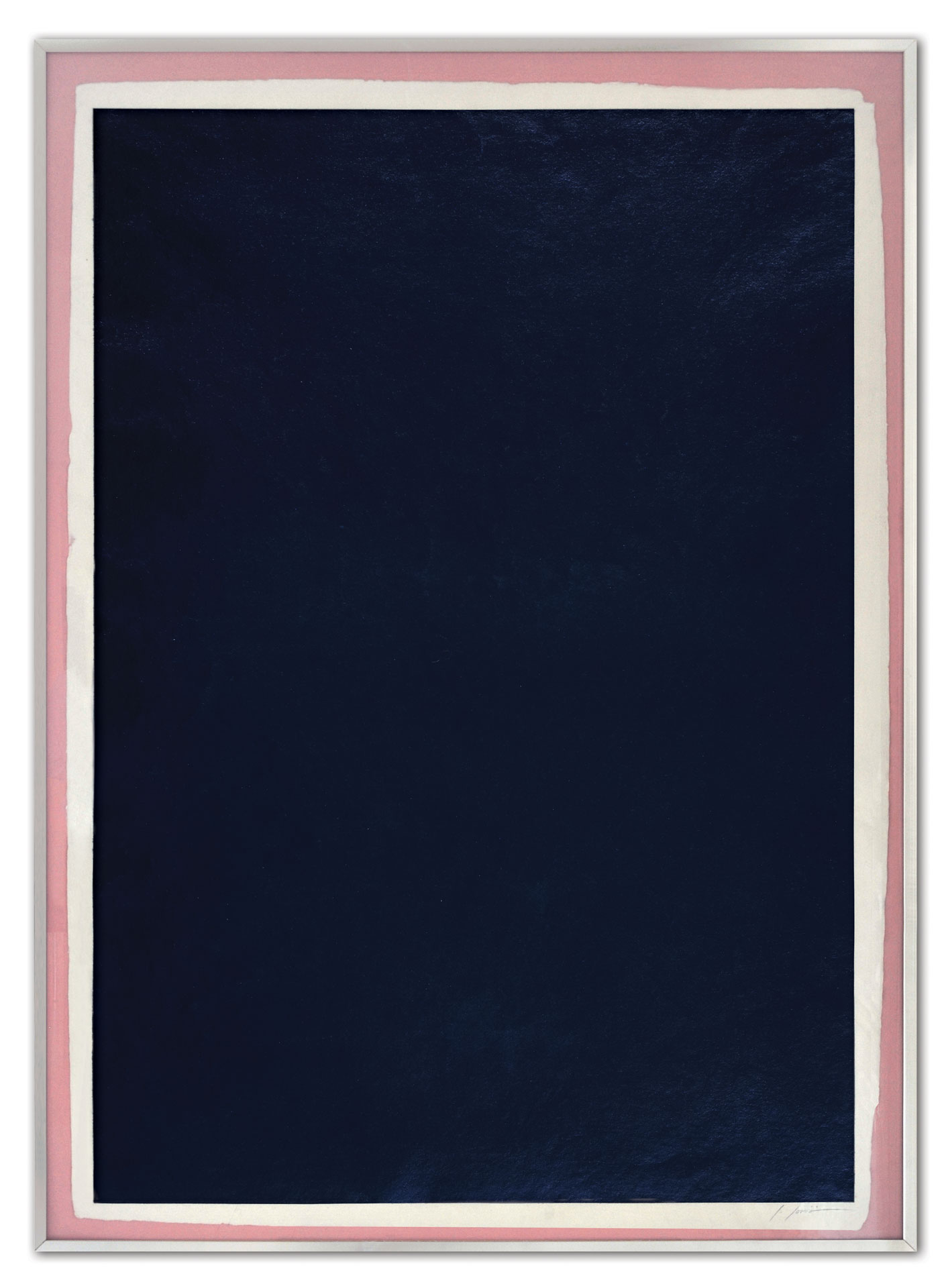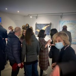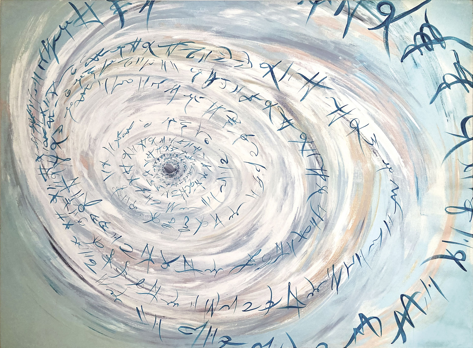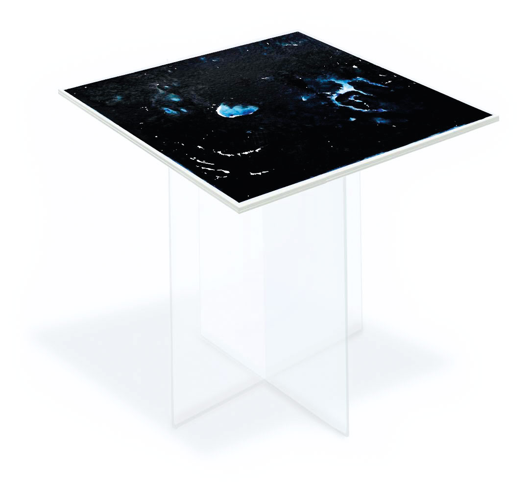 The word “astro” shares the same root as “abstract,” reminds the Roman-born artist who lives and works in Umbria. Thus, her first solo exhibition at Kou Gallery is titled Astreia, in ancient Greek meaning “starry night” or “daughter of the stars.” It was also the name of the goddess of purity and precision. Poetry and mathematics. The anthological exhibition traces, through sixteen works (including three furniture components forming an environmental installation), the artist’s creative journey — from early monochromes on paper to “colored noises,” watercolors mixing metallic flakes and gold dust. From “burnt papers” in deep blue with pink outlines resembling the soft reflections of an ancient oriental fabric, to cosmographies and the galaxy-code — large-format works created specifically for this exhibition. As in one of the theories of the universe, her world moves by “inflation” from dense monochrome to a multitude of signs.