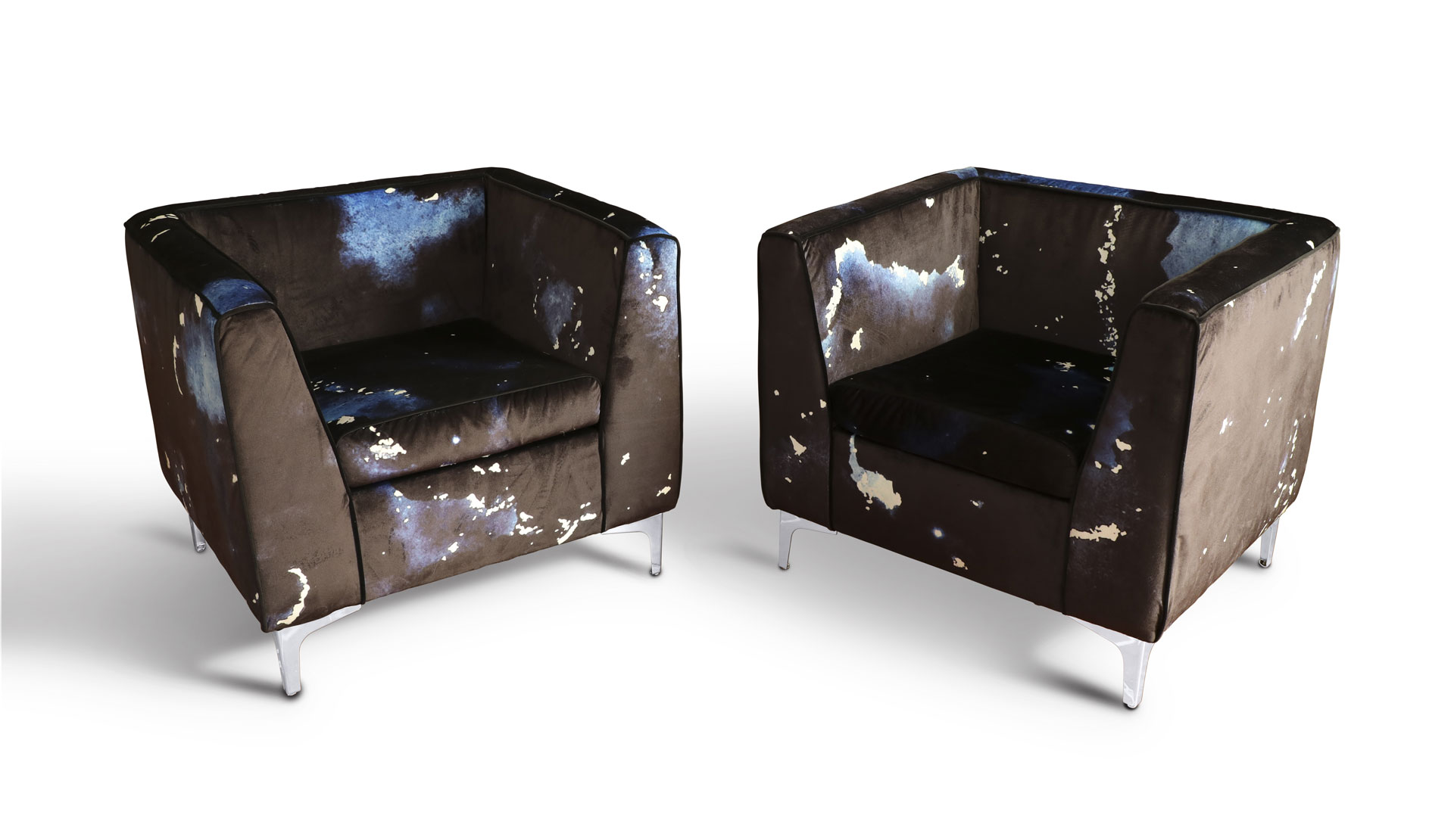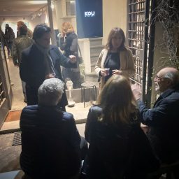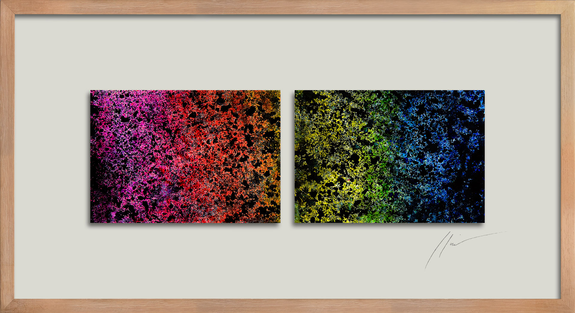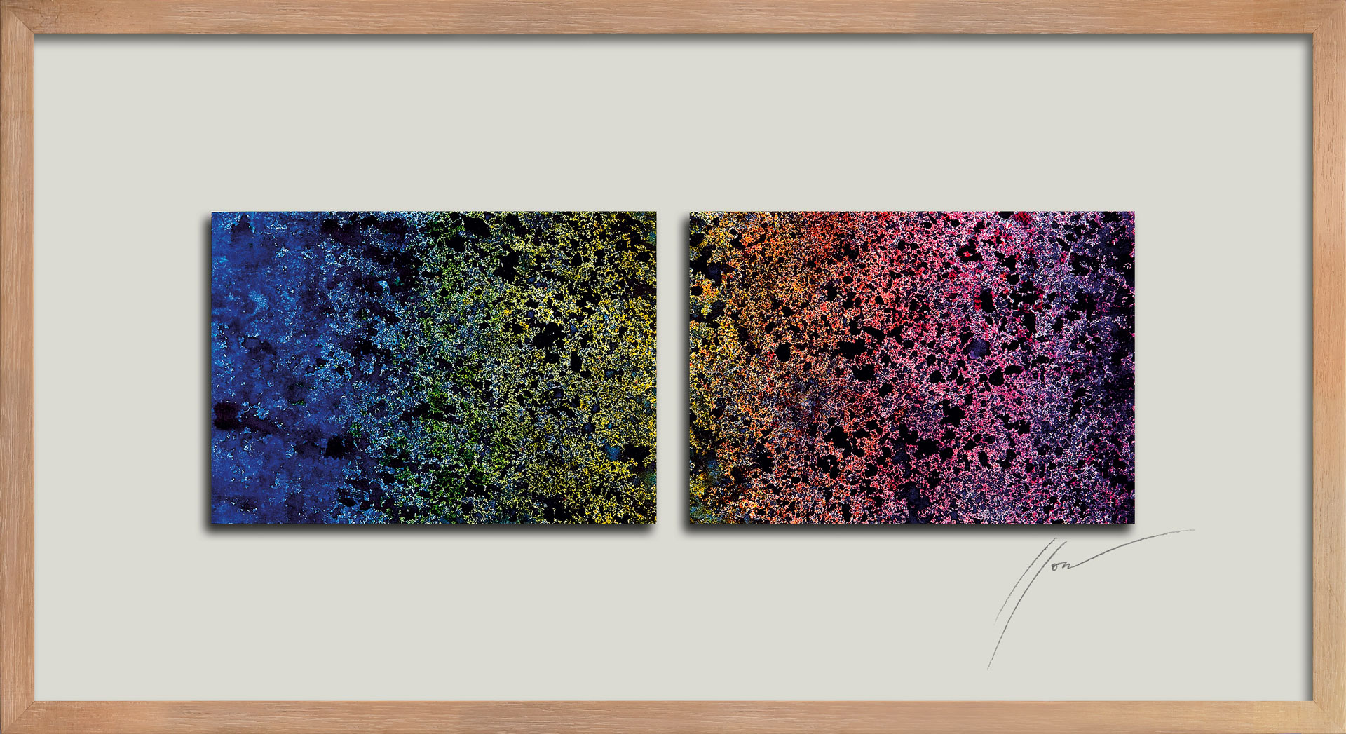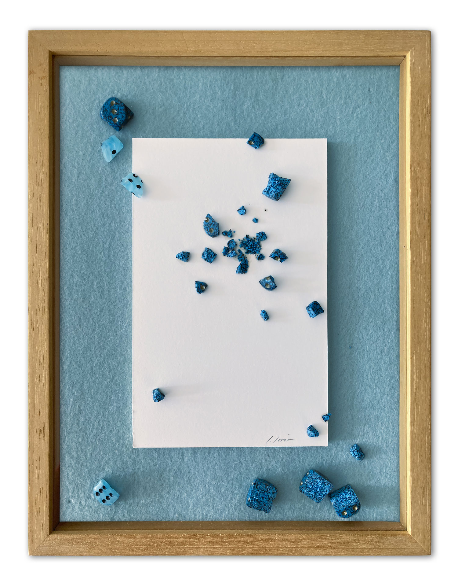 The word “astro” shares the same root as “abstract,” reminds the Roman-born artist who lives and works in Umbria. Thus, her first solo exhibition at Kou Gallery is titled Astreia, in ancient Greek meaning “starry night” or “daughter of the stars.” It was also the name of the goddess of purity and precision. Poetry and mathematics. The anthological exhibition traces, through sixteen works (including three furniture components forming an environmental installation), the artist’s creative journey — from early monochromes on paper to “colored noises,” watercolors mixing metallic flakes and gold dust. From “burnt papers” in deep blue with pink outlines resembling the soft reflections of an ancient oriental fabric, to cosmographies and the galaxy-code — large-format works created specifically for this exhibition. As in one of the theories of the universe, her world moves by “inflation” from dense monochrome to a multitude of signs.