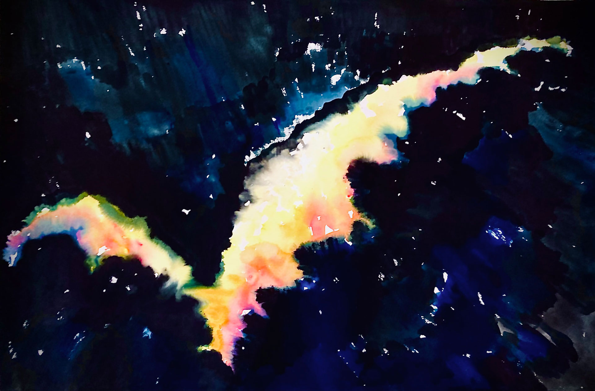 There is an extreme balance in the night sky that unsettles and captivates the human gaze. At the same time, it demands precision and calculation to avoid getting lost. The approach to the stars for the artist equals tracing an inner geography, an investigative language. The macrocosm observing the microcosm in a kind of inverted astronomy reminiscent of Renaissance philosophers. Her large canvases and cosmographic papers recall the seventeenth-century star atlases of Andreas Cellarius, the greatest Dutch cartographer of the celestial vault. At the same time, the codes applied to her stars connect to the light signs of Cy Twombly and the “dancing” lines of Brice Marden, both students of Franz Kline, the most intellectual and symbolic among the protagonists of American Abstract Expressionism.