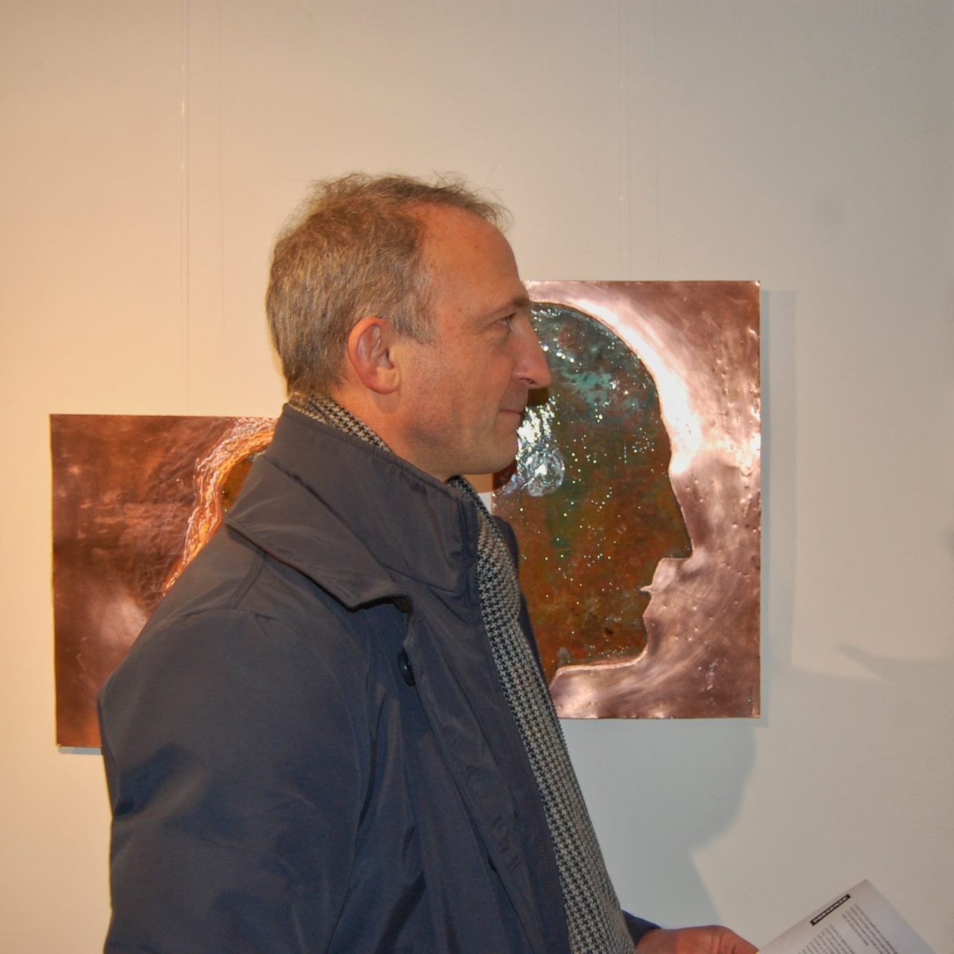 A recent series of works titled “Presences” proposes a path that leads to operate in the space between art and life. The creations move within a realm where the poverty of materials evolves into a refined richness of emotional expression, yet remains clear within the labyrinths of memory. They attempt to depict a living and real image of people, whose profiles interpret possible inner states of individuals. Through oxidized and sculpted metal plates, the intention is to reveal the spiritual state deposited in each of us by daily experiences, especially those marked by the recent pandemic.